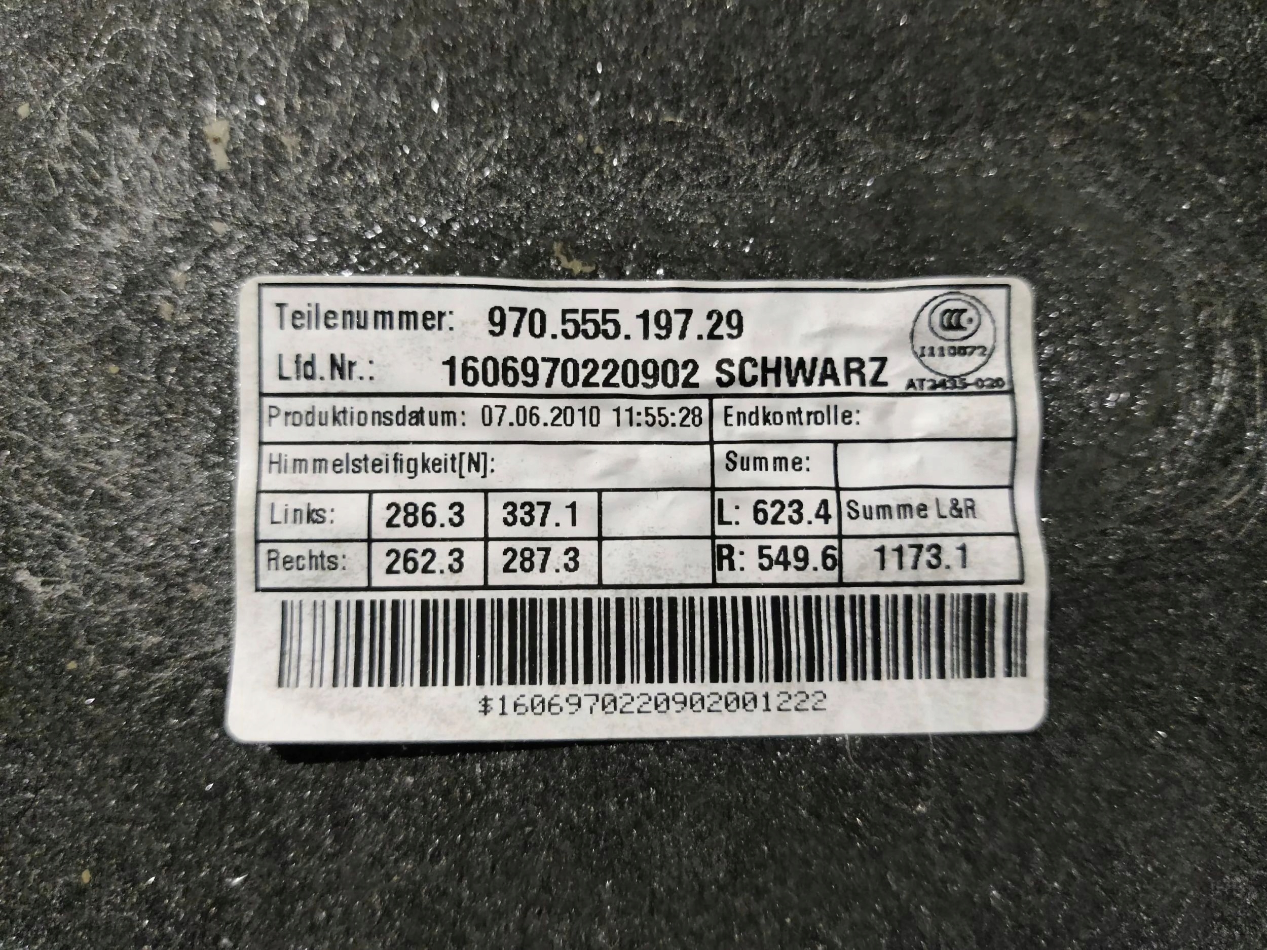 потолок PORSCHE PANAMERA (970) 97055519729 30703501 4.8л 294kw 2010