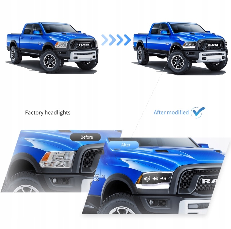 фары led левая правая Black 3 линзы Dodge RAM 2009-2018