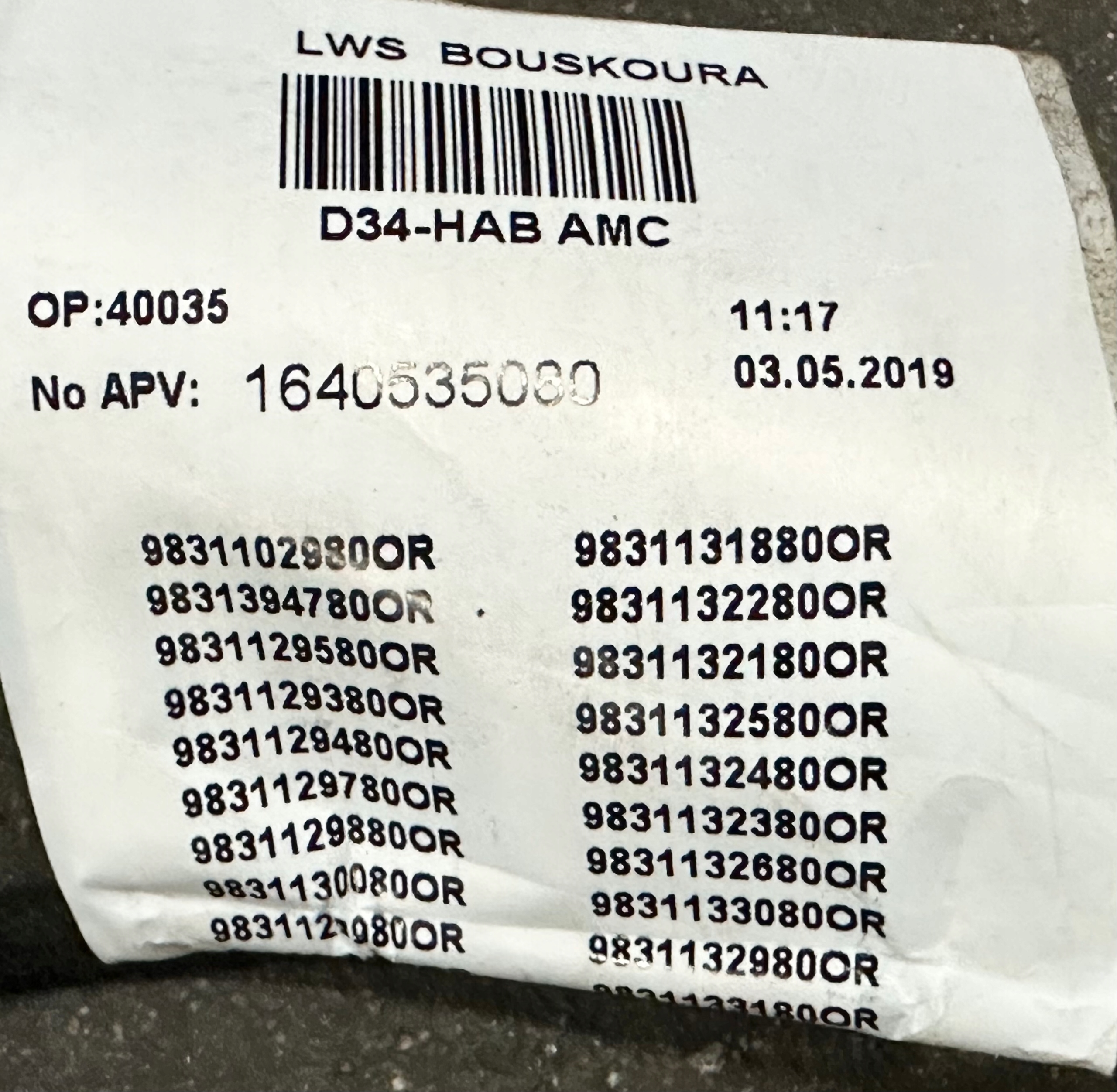 номер детали: 9831102980 OR