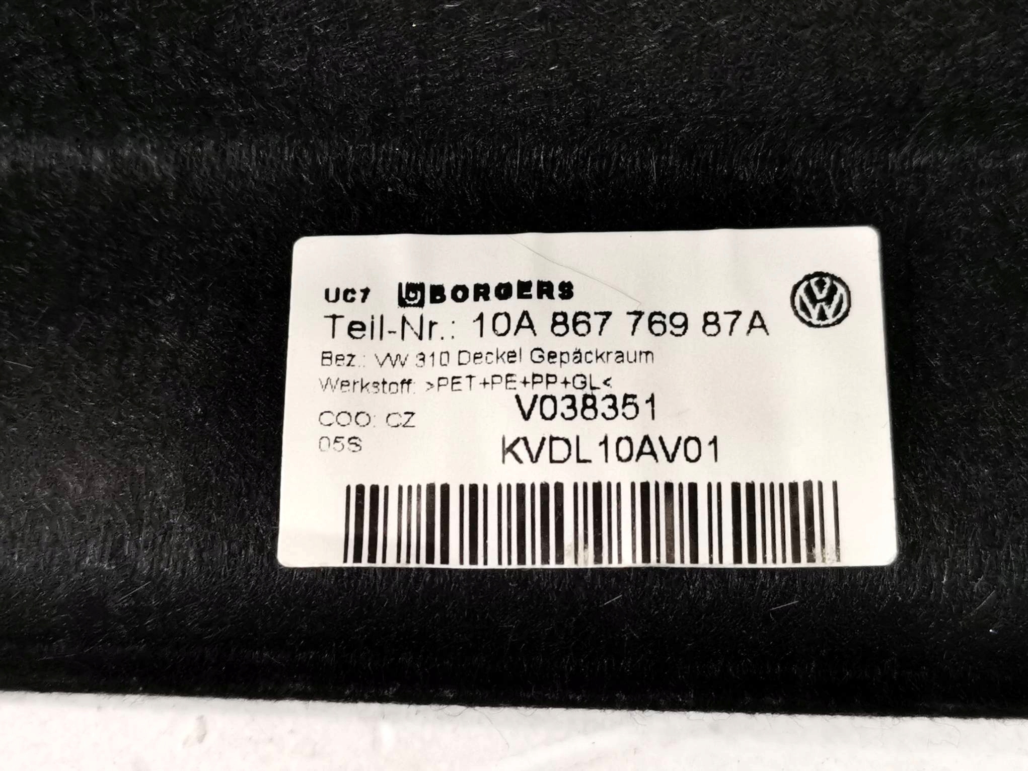 полка задний багажника vw id.3 ID3 10A867769 оригинал