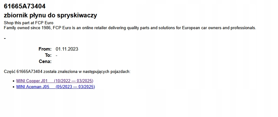 бачок омывателя насос жидкости 5A73404 MINI COOPER J01 Aceman J05