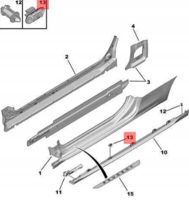 , молдинг шасси peugeot 208 2012-2019 9804442780
