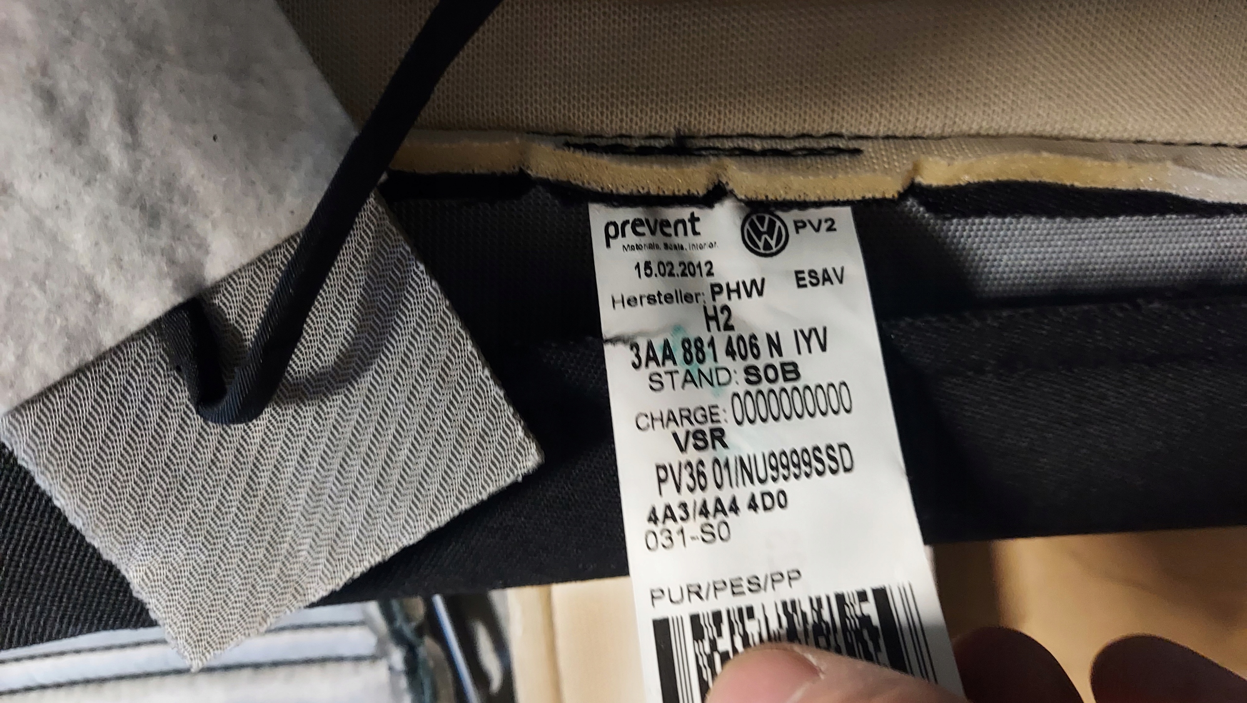 обшивка кресло vw PASSAT B7 3AA881806AHIYV 3AA881806AH