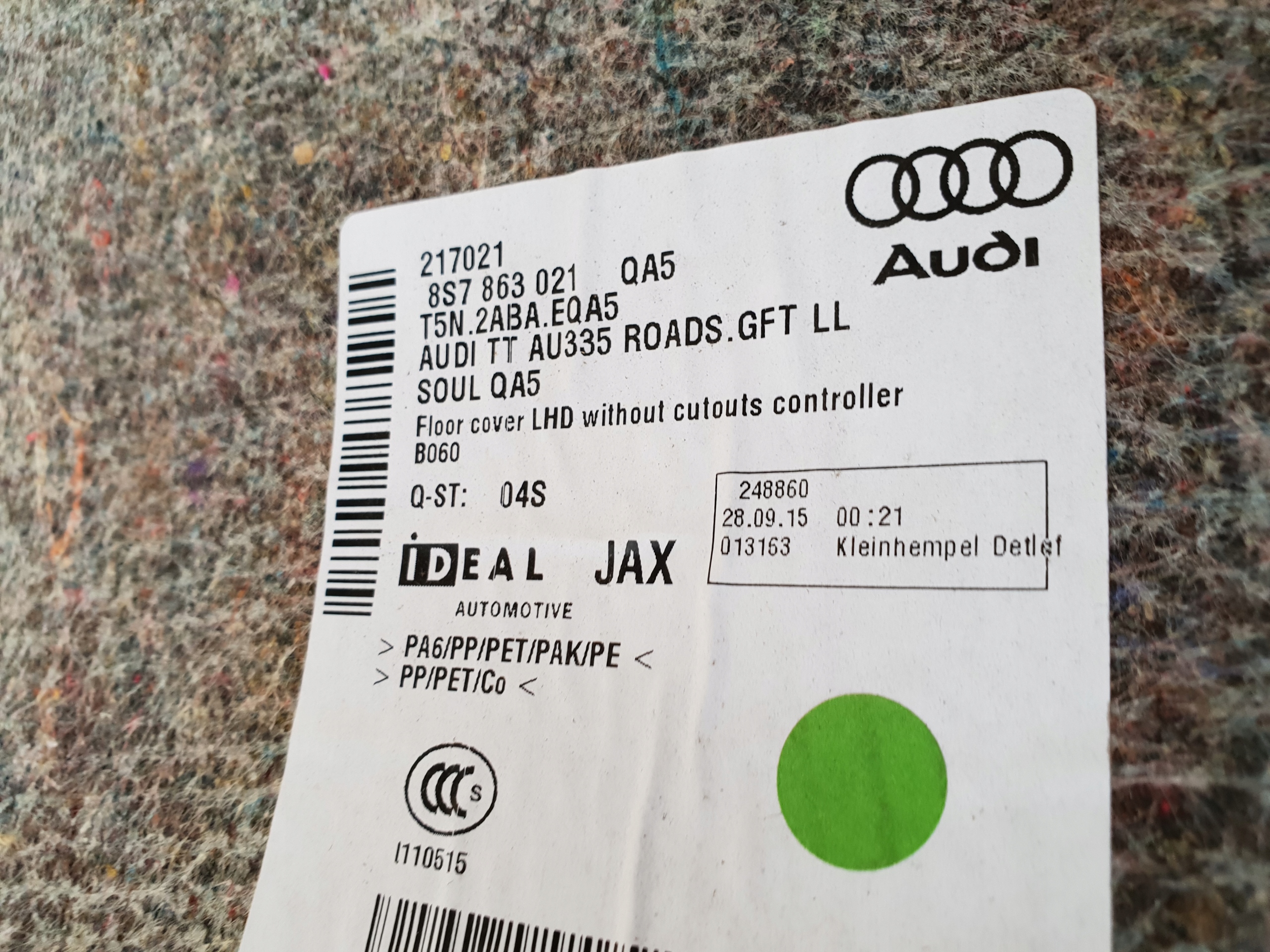 Audi тт 8S кабриолет ковер 8S7863021