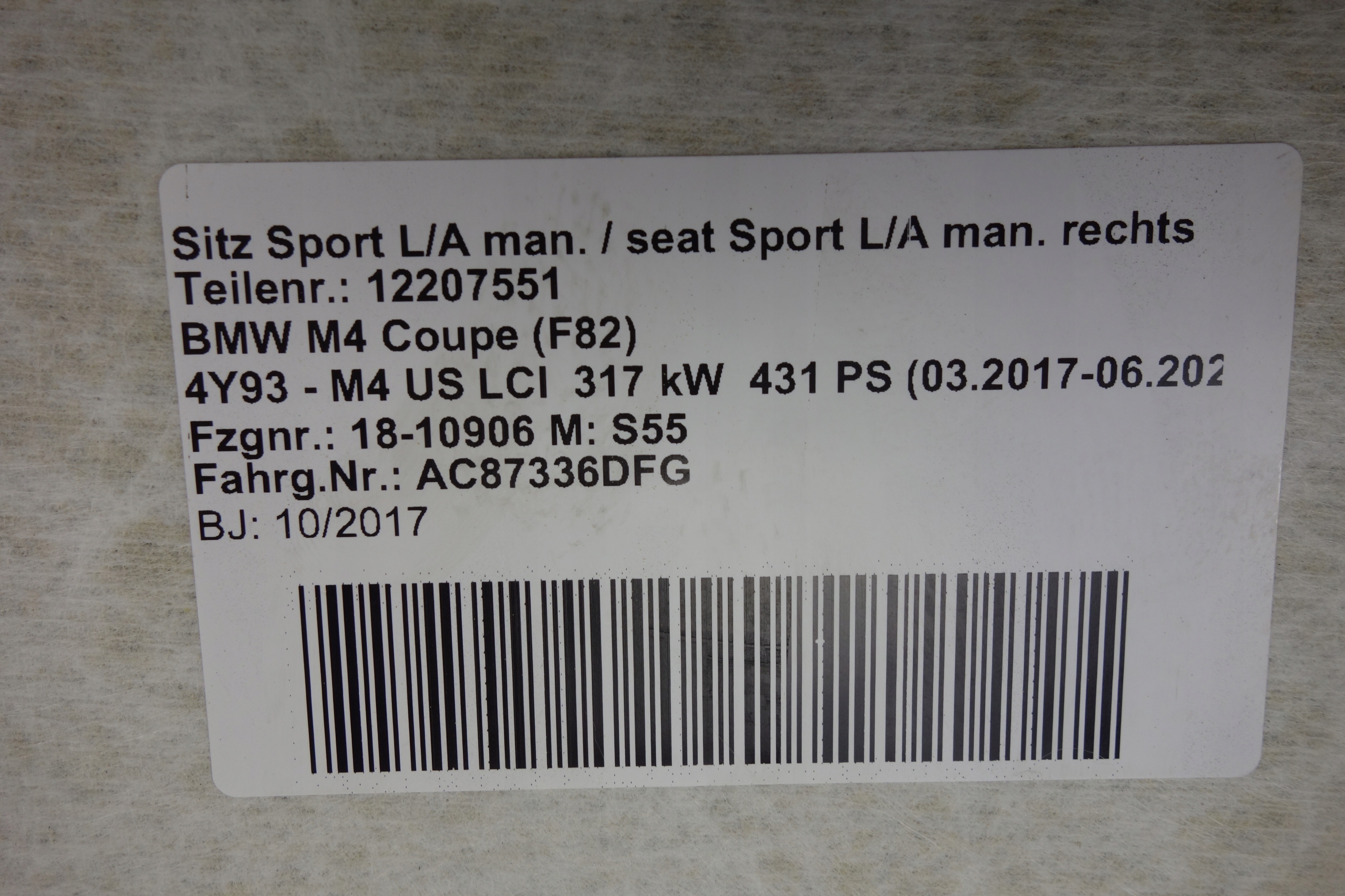 ZAPZA — уникальный маркетплейс запчастей автотоваров и услуг для физ и юр лиц. В каталоге маркетплейса ZAPZA представлены новые, б/у и восстановленные автозапчасти, для всех типов транспорта. Автодеталь потолок BMW F82 M4 F32 америка после демонтажа прошла проверку и готова к дальнейшей эксплуатации.