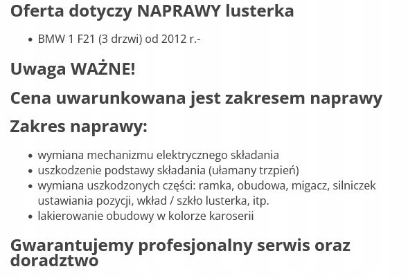 ZAPZA — уникальный маркетплейс запчастей автотоваров и услуг для физ и юр лиц. В каталоге маркетплейса ZAPZA представлены новые, б/у и восстановленные автозапчасти, для всех типов транспорта. Автодеталь BMW 1 F21 (3 Двери) зеркало от 12- правое после демонтажа прошла проверку и готова к дальнейшей эксплуатации.