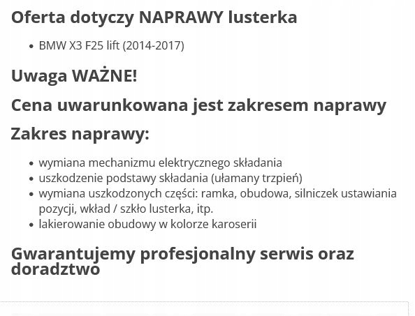 ZAPZA — уникальный маркетплейс запчастей автотоваров и услуг для физ и юр лиц. В каталоге маркетплейса ZAPZA представлены новые, б/у и восстановленные автозапчасти, для всех типов транспорта. Автодеталь BMW X3 F25 рестайлинг (14-17) зеркало левое после демонтажа прошла проверку и готова к дальнейшей эксплуатации.